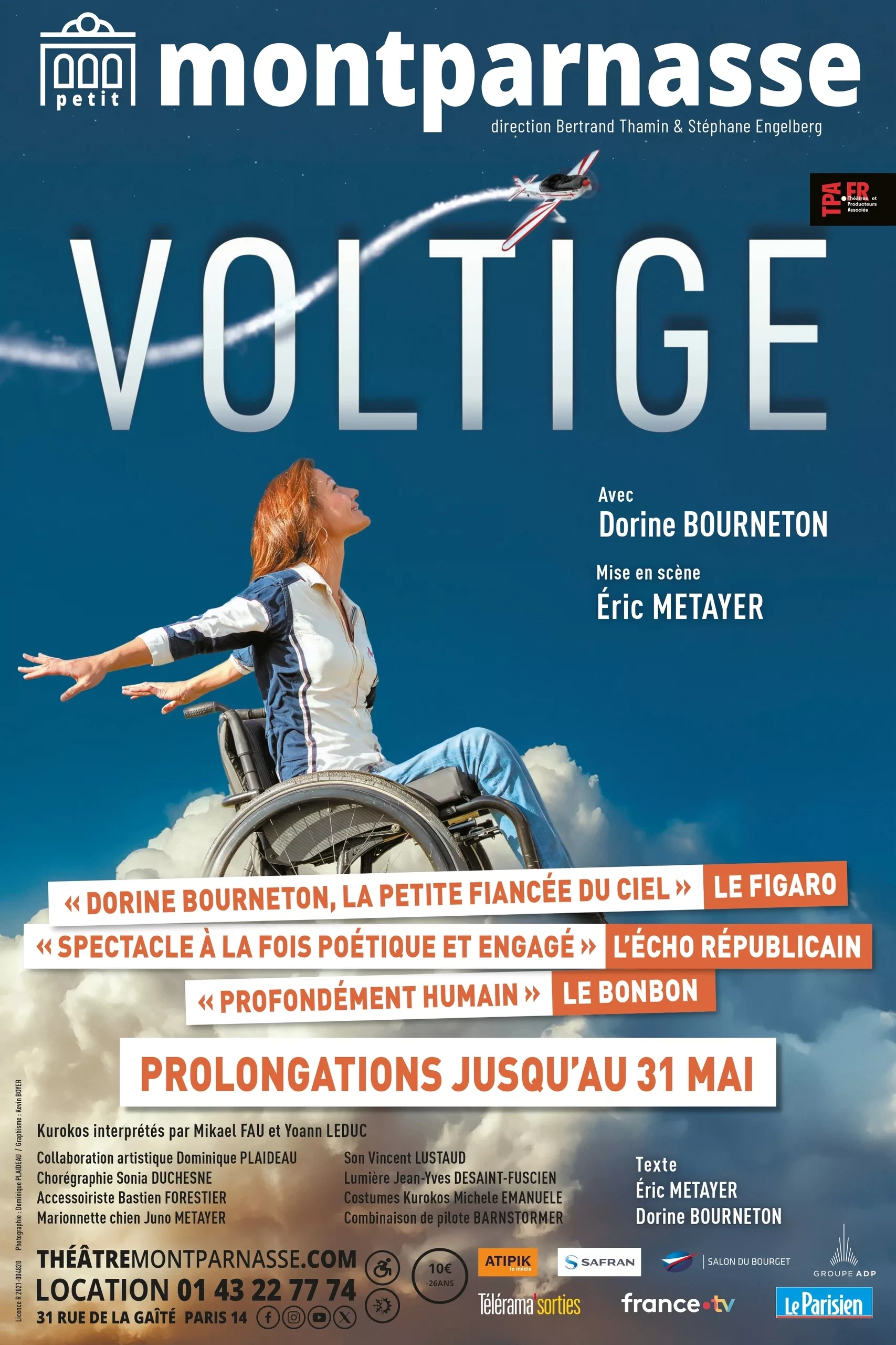 Le spectacle évoque un moment de vie, un moment de combat. Un destin qui se brise sur les pentes du mont d’Alambre à 16 ans, lors d’un crash d’avion, et qui devient une renaissance : celle de la première femme au monde pilote de voltige au Salon du Bourget.